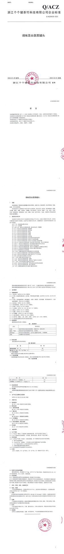• 調味混合蔬菜罐頭企業標準
